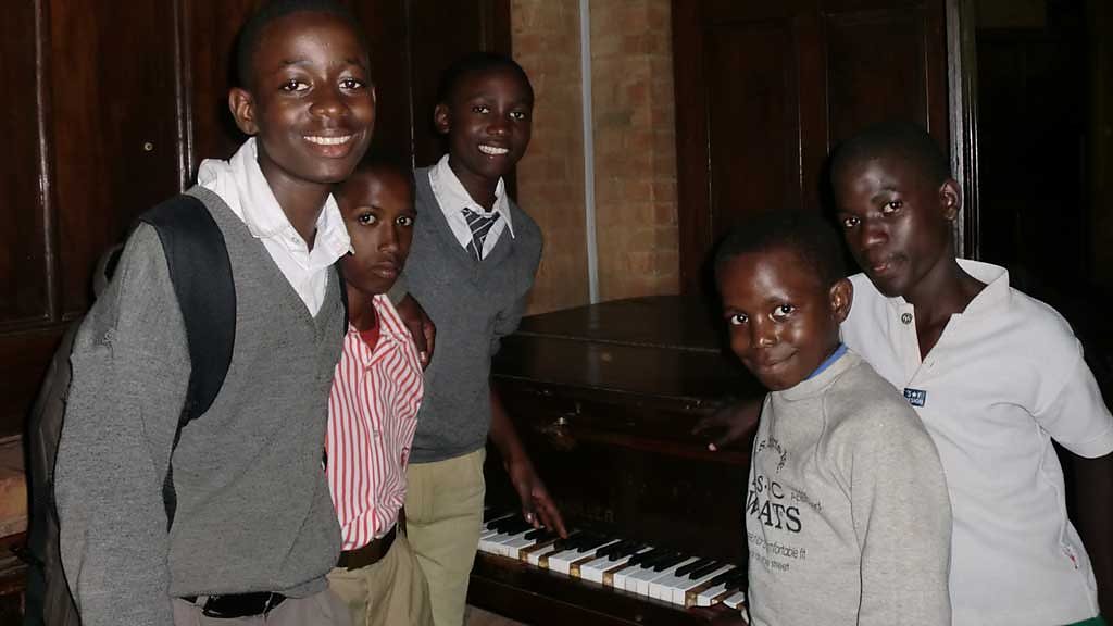 ‘Because of singing, I am living’. Kampala Music School began life in 2001 in the basement of the YMCA, giving music lessons to a handful of pupils. Twelve years later, it has moved into its own new premises and has become the international centre of musical excellence in Uganda – and has taught music to more than 2000 pupils. Some former students have gone on to study at international music schools and are now forging their own careers as fully fledged classical musicians. This year sees a new director of music, Kiggundu Frederick Musoke – himself a former star pupil. Sarah Taylor meets the staff and pupils of KMS to hear about this centre of musical excellence. KMS has become a lifeline to many where music can be enjoyed alongside friendship, where many pupils come from the backdrop of a fairly bleak existence. And, no one is turned away through lack of ability to pay. Not only do pupils leave with a life skill but many go on to become music teachers in international schools throughout East Africa. Such is the pupils ability and enthusiasm that the Associated Board of Music now send an examiner for an entire week to cope with the volume of students taking grades one to eight on their instruments. (Picture: Choirboys from Namirembe Cathedral take their only chance to play the old, but loved piano)