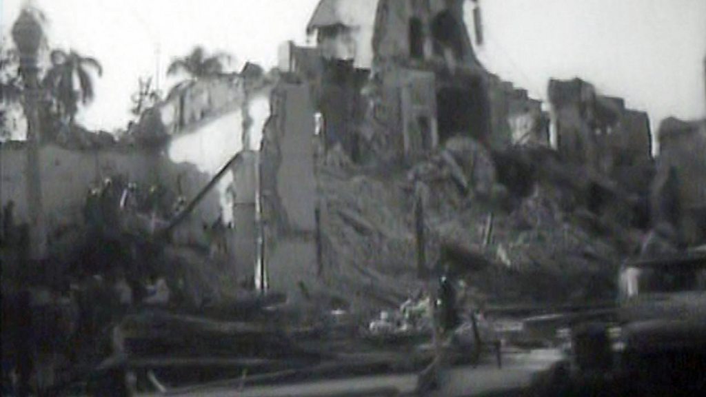 In January 1952 hundreds of buildings were deliberately set ablaze in downtown Cairo following the killing of Egyptian policemen by British troops in the Suez Canal Zone. Tension between Britain and Egypt had been growing over British military control of the Suez Canal. The event became known as Black Saturday. Photo: Buildings destroyed in the Cairo Fire, January 1952 (BBC)