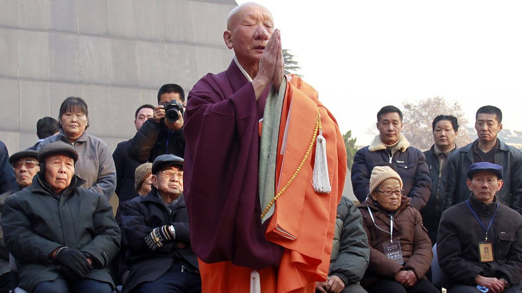 They are Asia’s economic giants – yet the historical record of Japan and China continues to cause tensions. China’s leaders accuse Japan of failing to apologise for its wartime aggression– while Japan’s prime minister, Shinzo Abe, talks of rewriting the country’s pacifist constitution. Tensions are rising in the South China seas. Japanese journalist Mariko Oi and Chinese journalist Haining Liu, visit each other's country to explore what their troubled pasts mean today. In programme one, they head to Japan where Mariko meets her 92-year-old grandfather who, in his youth, helped make Zero fighter planes. They visit the controversial Yasukuni Shrine in Tokyo, which enshrines the spirits of Japan’s war dead, including war criminals. The team goes on to meet the new generation of nationalists who want to downplay Japan’s historic role in atrocities across Asia. Haining has an emotional response. (Photo: A Japanese Buddhist monk prays during a ritual ceremony marking the 76th anniversary of the Nanjing massacre at the Nanjing Massacre Museum, Nanjing, Jiangsu province. Credit: Reuters)