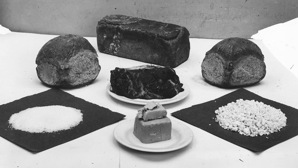 Life on any island is heavily dependent on imports to provide the food and necessities that cannot be grown or made on the island, but how is this done during wartime? It was only once the German U-boat campaign had intensified that food supplies became a problem for the Bailiwick of Guernsey. From 1917 to 1920, ration laws controlled every aspect of the food chain from production to what recipes you could use – which for about six months included the use of potatoes in the mix for baking bread. Anyone wasting food or breaking any of the rules faced a £100 fine – the equivalent of £10,000 today (2014). Location: Guernsey Information Centre, Guernsey GY1 2LQ Image shows sugar, butter, meat, bread and breadcrumbs rations Photograph courtesy of Getty Presented by Ben Chapple