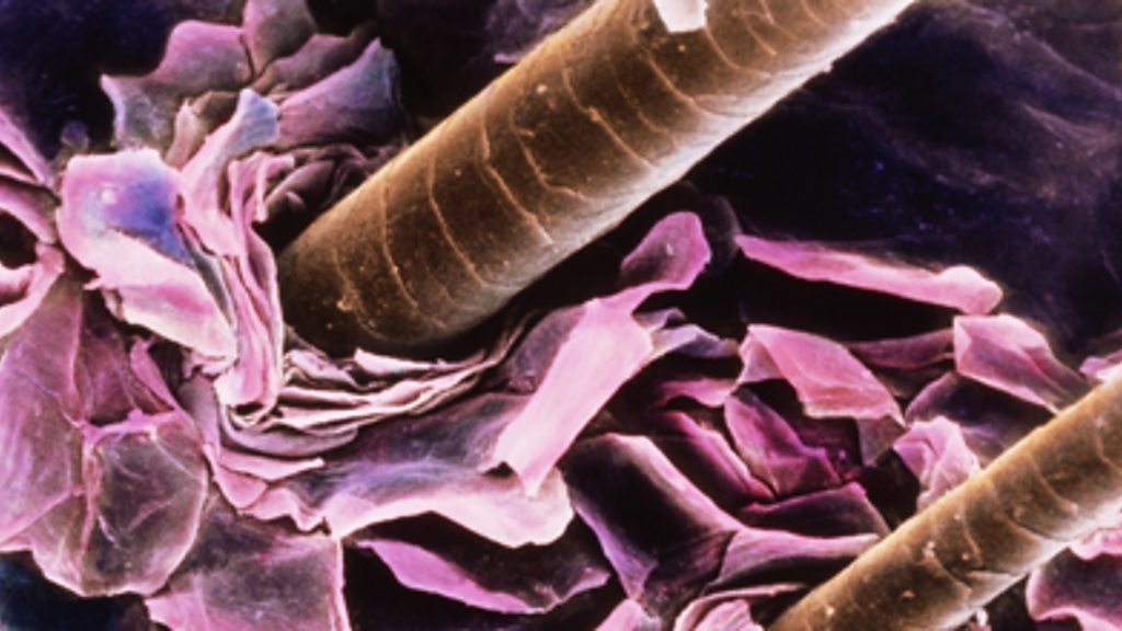 Hair has always held us captive: a symbol of vitality, or of sexual attraction and youth. But what are its molecular secrets? And what are we learning about those other mysterious filaments: the hair-like cilia attached to almost every living cell? Bridget Kendall asks leading hair loss researcher Ralf Paus, medical geneticist Philip Beales, and artist Adeline de Monseignat whose sculptures of fur and hair look both dead and alive. Photo: Hair on scalp (coloured scanning electron micrograph) Credit: Science Photo Library