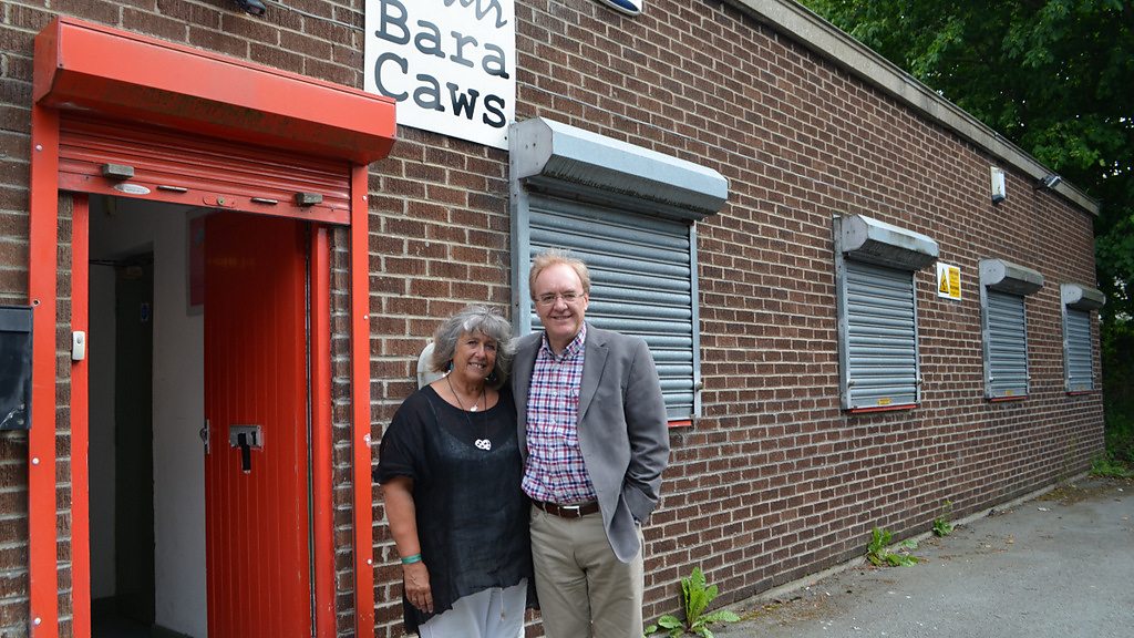 Linda Brown sy'n gweithio i Theatr Bara Caws ers dros 30 mlynedd oedd gwestai'r bore