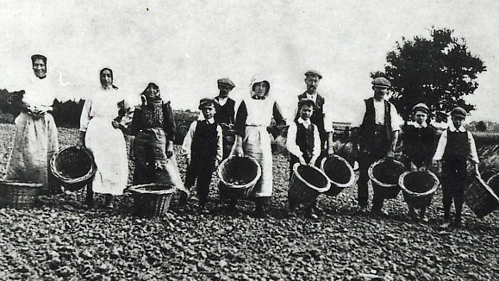 The war years saw a drastically reduced workforce for Lincolnshire’s farms. Conscription took many men off the land. The 1915 Sleaford Agricultural Census gives an insight into the struggle some farmers had. Under the heading Casual Labourers many responded - none to be had. More farms increasingly relied on women, which led to the creation of the Women’s Land Army in 1917. By the end of that year there were over a quarter of a million women working as farm labourers. Irish gangs continued to work in Lincolnshire’s fields and children were released from school to help. It wasn’t only men who left our farms to go to war – horses were also needed on the front line. This was a time when mechanisation had not taken off fully and the numbers of tractors in Lincolnshire were few. Wheat and oat prices were guaranteed with the introduction of the Corn Production Act of 1915. The rise in potato prices during wartime encouraged growers to increase their yields. By the end of the war thousands of acres of pasture land had been converted to crop growing. Location: The Fens, Lincolnshire NG34 Image: A ‘potato gang’ (1914), courtesy of Lincolnshire Archives