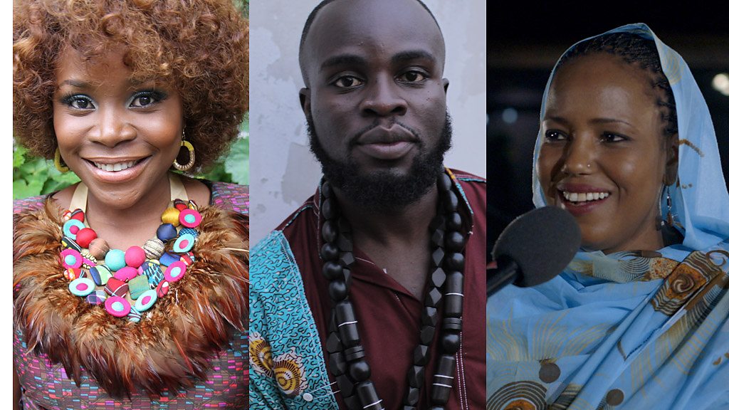 We are joined by the highly creative wordsmiths M.Anifest from Ghana and Tumi from South Africa, whose conscious rap uses lyrics to challenge and delight. Both seek out superb musicians to work with and to learn from. Plus, two artists from the Sahara - Aziza Brahim from western Sahara performs a song from her latest album, Soutak, which has been highly acclaimed by critics. We are also joined by Songhai Blues whose members fled northern Mali when the area was overrun by extremist rebels and music was banned. They have subsequently been discovered by the British musician and impresario Damon Albarn and have been pleasing audiences in the UK with their bluesy desert rock. Lala Njava from Madagascar whose deep and highly distinctive vocal technique derives from the traditional music from the south of her country. Now she lives in Brussels, and her sound is rich with jazz and other contemporary and international influences. We hear from Omawumi, a Nigerian pop diva with a difference. Not only does she have a fantastic voice, but she is a witty and bold critic of her society. The song she performs for Global Beats is an irresistibly packaged appeal for honesty and action on incest. Also from Nigeria, Villy, is a very new talent doing exciting things with Afrobeat. And, in Rwanda we hear the simple acoustic charm of The Good Ones. The musicians, who play whatever they can find - including a pair of boots - are winning fans with songs that feel fresh and from the heart. Their success means they may soon need to give up their day jobs, which include farming, driving and teaching. (Photo: From left to right, Nigerian pop diva Omawumi, Ghanaian rapper M.Anisfest and Aziza Brahim from western Sahara. BBC copyright)