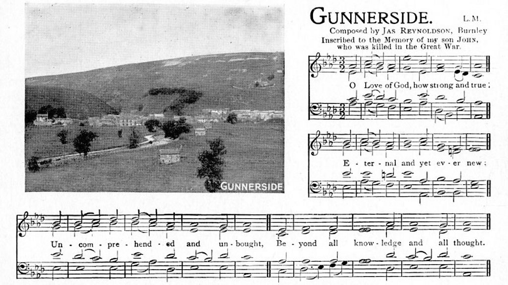 The Reynoldsons were among a group of lead miners who moved to east Lancashire from places like Gunnerside in the Yorkshire Dales when the mines there were closing. Many were devout Methodists and worshipped at the chapel on Brooklands Road in Burnley. John Reynoldson joined the Loyal North Lancashire Regiment in 1916. He was killed, just months later, on 23 April 1917 – the day after his 21st birthday. Private Reynoldson has no known grave and is remembered on the Arras Memorial to the missing. His father James wrote a hymn called "Gunnerside" and dedicated it to the memory of his son. The music was sold to raise money for the National Children's Home and Orphanage. The hymn lives on today. It's still played by the Muker Silver Band in Yorkshire with some of the band members still coming from Gunnerside. Location: Gunnerside, Lancashire Image courtesy of Towneley Hall Art Gallery and Museum Burnley