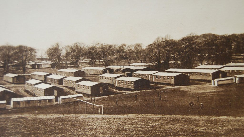 Alnwick Camp was built on The Pastures, a beautiful landscape in front of Alnwick Castle which housed thousands of soldiers in wooden huts before they were sent to the trenches. The men were mostly from the Tyneside area and had joined local battalions like the Scottish Tyneside. But as there was no room to billet or train them in Newcastle, the Duke of Northumberland provided land for the camp at his castle some 35 miles north of Newcastle. Many of the men were marched along the old A1 to great fanfare with crowds greeting them at places like Morpeth and Felton along the route. Sadly, many of those men took part in the Battle of the Somme where the Tyneside Battalions suffered catastrophic losses. Later in the war, the camp became a convalescent camp for wounded soldiers. It was dismantled after the war and the huts auctioned off to local people. Location: The Pastures, Alnwick Castle, Alnwick, Northumberland NE66 1NQ Image: Alnwick Camp, courtesy of Dave Barras