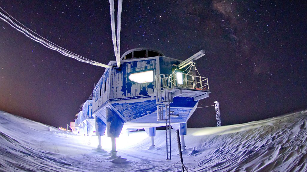 This is possibly the BBC World Service's most unusual programme as well as serving its smallest intended audience. It is broadcast each year on June 21st to a guaranteed audience this year of just 43 people: the men and women scientists and support staff overwintering at four British bases in Antarctica. There are just eight among the seals and penguins of King Edward Point on South Georgia and only four at nearby Bird Island. The biggest base, Rothera, on the Antarctic Peninsula houses 19 winterers – the population can reach 100 in the Summer. Furthest south still is Halley VI on the Brant ice shelf where the Sun does not rise for many weeks and low temperatures are made worse by bitter winds. Last year, on the record coldest day (minus 55.4 Celsius), shortly after midwinter, a serious power failure called for their best survival skills. Now, there's a crack beginning in the vast, floating ice shelf on which Halley sits. But the futuristic new modules of Halley VI – the previous five bases have either been dismantled or even lost beneath the ice - are on skids and can be towed to safety by giant tractors when the light returns. Festivities on midwinter's day are as traditional as those of Christmas. The base commanders rise early to cook breakfast for their staff, presents are exchanged, there are sports and even, weather permitting, a mad streak in the snow! Feasting continues before they gather round a shortwave set to listen to the traditional broadcast packed with greetings from their family and friends back home together with music requests and messages from the British Antarctic Survey and a few celebrities. Finally the Antarctic horror movie The Thing is screened. For those who know the plot, perhaps it is just as well there are no longer sledge dogs in Antarctica! Presenter of the greetings programme, Martin Redfern, visited Rothera a few years ago to record science programs for BBC World Service. He says "visitors to Antarctica cannot fail to be moved by its beauty and its indifference to human presence. And that gives me deep respect for those who endure the darkest long night there. Although I was only there in the summer, I can imagine the scene now and feel I am talking to friends." Image: Halley VI base in Antarctica (photo: Sam Burrell)