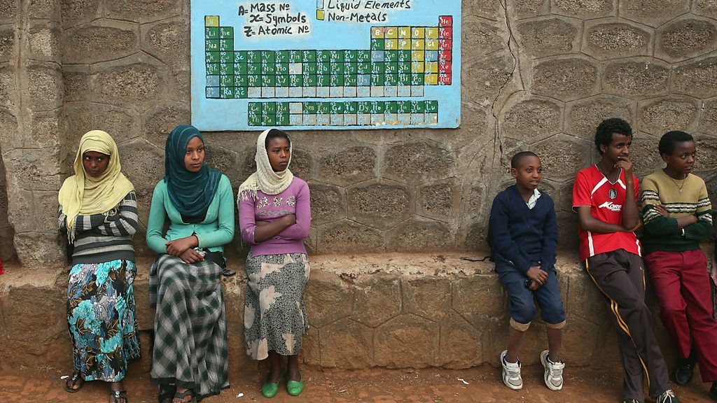 This year the United Nations will bring together the world’s countries to agree goals for sustained global development. These follow on from the Millennium Goals aimed at reducing poverty and improving the quality of life for all citizens of the world. One of the key areas for action has always been seen as Africa. But Africa is a changing continent. In this first of a two-part series, Hugh Sykes visits Mozambique and Ethiopia, and reports on stories of change and innovation. In Mozambique he finds a strong women's movement trying to overcome a deeply entrenched tradition that expects women to get married, raise a family and stay at home. And in Ethiopia he meets a new legion of health workers saving hundreds of babies' lives - the number of children who live beyond the age of five has doubled since the year 2000. Photo: Secondary school students sit under the periodic table of the elements in the courtyard at a training centre and school in Addis Ababa, Ethiopia, 2013. Credit: Sean Gallup/Getty Images