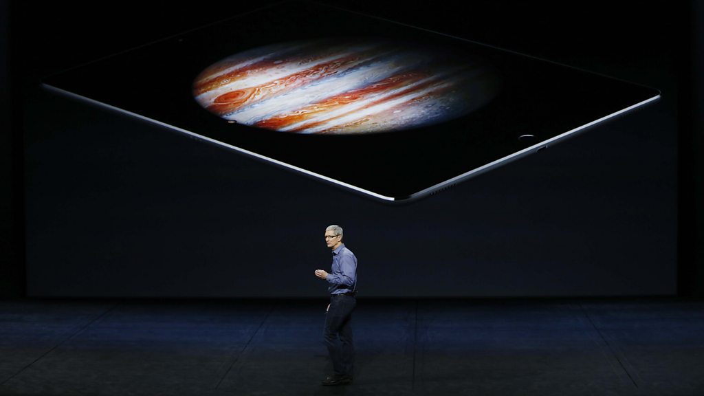 As Apple unveils its latest shiny offerings - we ask if the famously consumer-focused company can appeal to serious business users. And is the company's boss, Tim Cook, right to predict that the "future of TV is apps"? Plus - are we becoming increasingly intolerant of advertising on mobile? We examine what the rise of ad-blocking means for the future of the web, and who pays for it. Rory Cellan-Jones is joined by Mel Exon, managing director of advertising agency BBH, and Chris Foxx from the BBC's tech desk. (Picture: A reporter walks by an Apple logo during a media event in San Francisco on September 9, 2015. Credit: AFP/Getty Images)