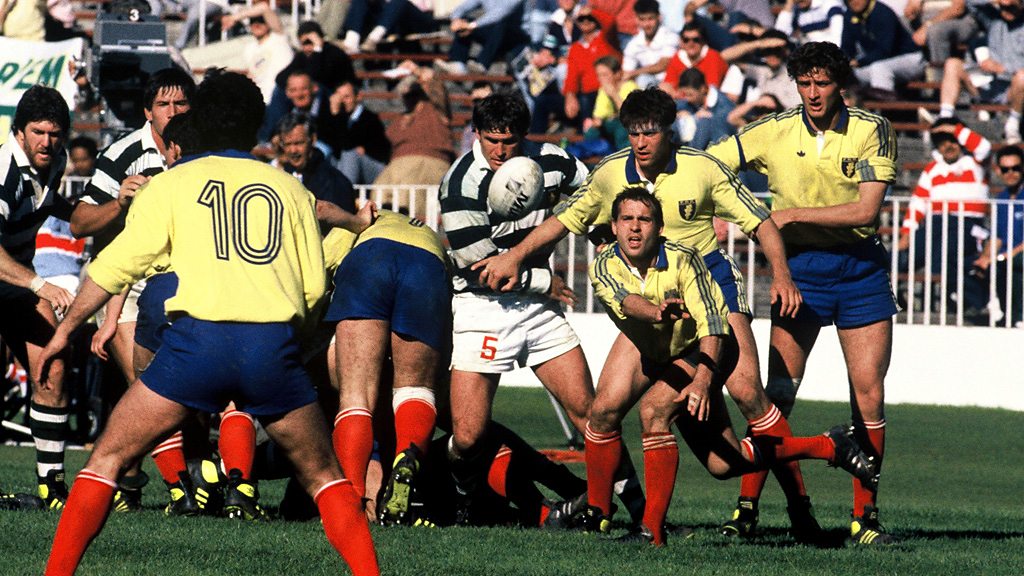 In the 1980s, rugby enjoyed a golden era in Romania thanks to the support of the notorious Communist dictator, Nicolae Ceaușescu. A team consisting mainly of army and police officers enjoyed a string of famous victories until the overthrow of the regime in 1989 put their lives in danger. Robert Nicholson speaks to former Romanian international, Haralambie Dumitras. The programme is a Whistledown Production. (Photo: The Romanian rugby team, in yellow, in action in the 1980s. Credit: Getty Images)