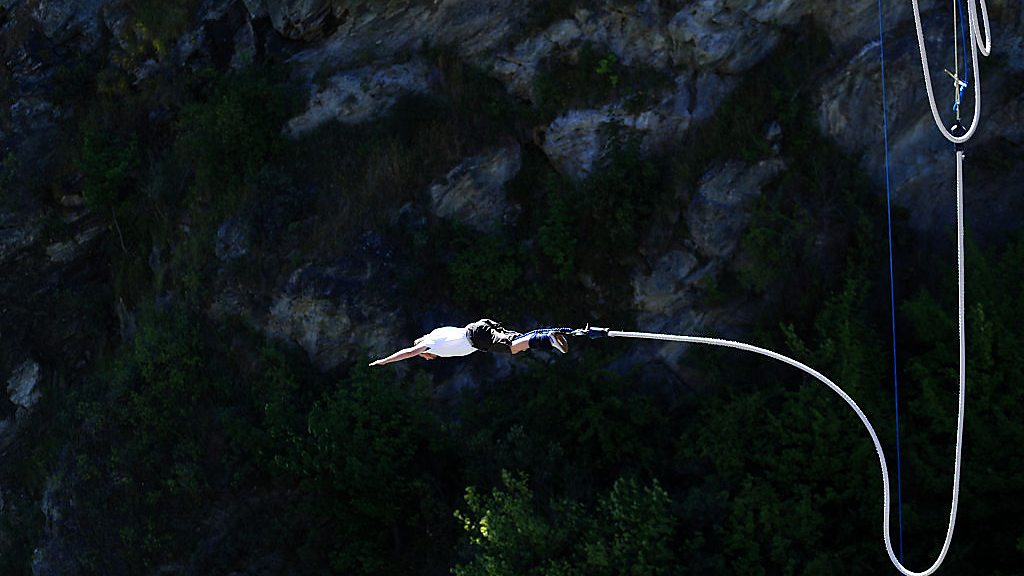 "I wasn't terrified on the first jump... the only thing left was to see what the buzz was like." AJ Hackett along with his friend Chris Sigglekow, experimented with rubber cords and weights before jumping off bridges in his native New Zealand. He jumped off the Eiffel Tower in 1987, a stunt that drew attention to the extreme sport and made it popular around the world. Picture: Person bungee jumping, Credit: Getty Images