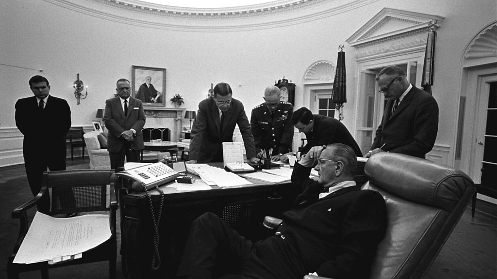 The CIA has just released 2,500 top secret presidential briefings from the 1960s. The President’s Daily Brief – or PDB – is the US intelligence agencies’ best assessment of global threats, delivered directly to the president every morning. The CIA’s director, John Brennan, has described the PDB as “among the most sensitive and classified documents in all of our government”. The decision to release some PDBs, even documents relating to events many decades ago, was not taken lightly. And, the briefings highlight an almost impossible dilemma – one still faced today by every Director of National Intelligence - what should, and should not, be said? The president cannot absorb everything - there has to be a choice. We explore the relationship between the intelligence, the advisers and the president. What does the president need to know? (Photo: President Lyndon B. Johnson (seated, foreground) working with (background L-R): Marvin Watson, J. Edgar Hoover, Sec. Robert McNamara, Gen. Harold Johnson, Joe Califano, Sec. of the Army Stanley Resor. Credit: LBJ Library)