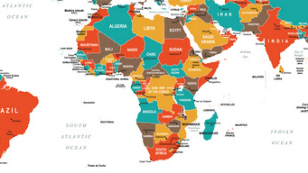 Five portraits of Africans who changed the world including: president of South Africa, Nelson Mandela, president of Ghana, Kwame Nkrumah, president of Liberia, JJ Roberts, writer Chinua Achebe and pioneering footballer Arthur Wharton. Picture: World map with Africa, Credit: Thinkstock