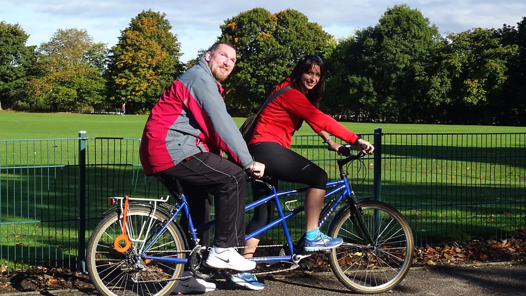 Producers Suzy Beaumont and Phil Sime try their hand at tandem cycling