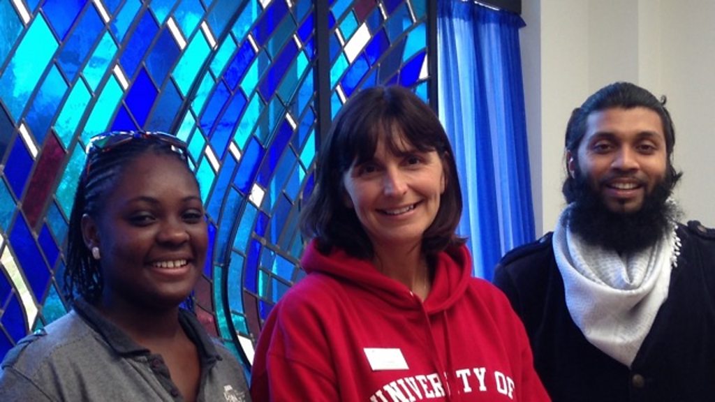 Students chat to Chaplain Jo about the value of a multi-faith space at University