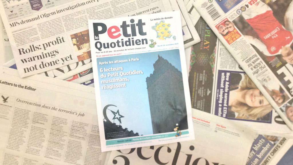 Le Petit Quotidien - a French daily children's newspaper - has been helping its young readers understand and deal with the Paris attacks. The paper's editor, François Dufour explains why he devoted Tuesday's newspaper to the stories of their young Muslim readers. ( Photo: Front cover of Le Petit Quotidien, 24th November 2015)