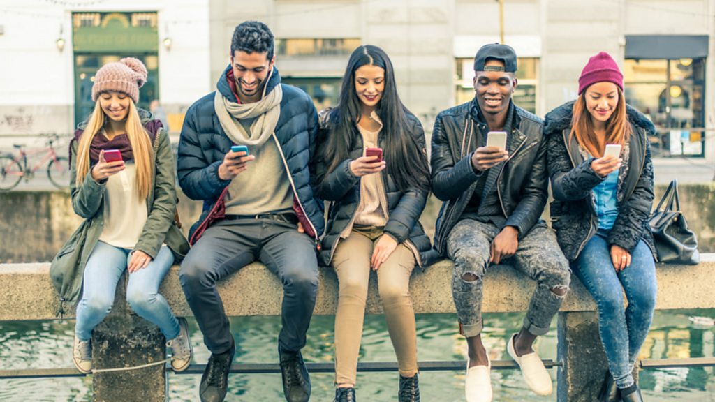 Nick Rankin looks at human behaviour in relation to mobile phones, and how the devices have managed to blur the boundaries of private and public, real and virtual. Picture: Group of people using phones, Credit: Thinkstock