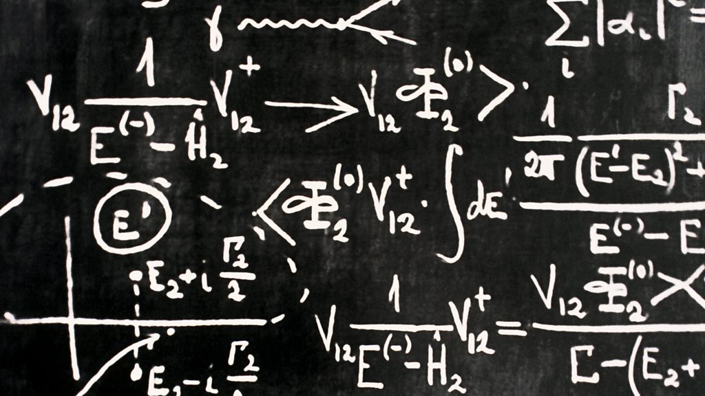 Cosmologist Professor Carlos Frenk tells Jim al-Khalili that equations give him the same feeling as listening to his favourite Beethoven symphony. Image: Particle physics equations, BBC Copyright