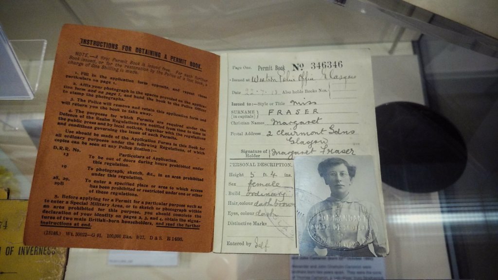 IV2 3PY You wouldn’t think of Inverness as a frontier station but a hundred years ago armed soldiers could have demanded your papers. Much of the highlands became a Special Military Area under the Defence of the Realm Act, starting 25th July 1916. To travel there as a visitor you needed a special permit. Local pass books had been issued to all British subjects there since August 1914 but these new visitor permit books for travel were more detailed. The precautions were needed because the Highland capital housed one of most important naval offices in Britain and the ‘Jellicoe Express’ arrived at its station taking navy personnel north on the way to Scapa Flow and Invergordon. Local historian Dave Conner tells us about security in the Navy’s gateway to the Highlands in WW1. Cait McCullagh of Inverness Museum and Art Gallery tells us about pass books.
