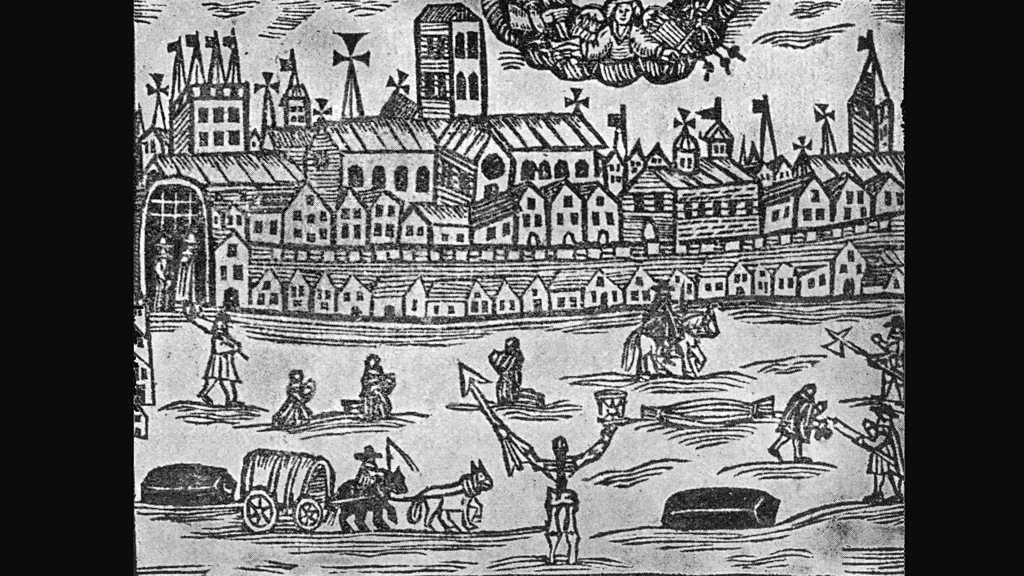 In the summer of 1665, London was gripped by one of the worst epidemics in its history. The outbreak later became known as the Great Plague. Witness hears eye-witness testimony from the time, including an account by famous diarist Samuel Pepys. (Photo: The angel of death presides over London during the Great Plague of 1664-1666, holding an hourglass in one hand and a spear in the other. Published in The Intelligencer, 26 June 1665. Credit: Hulton Archive/Getty Images)