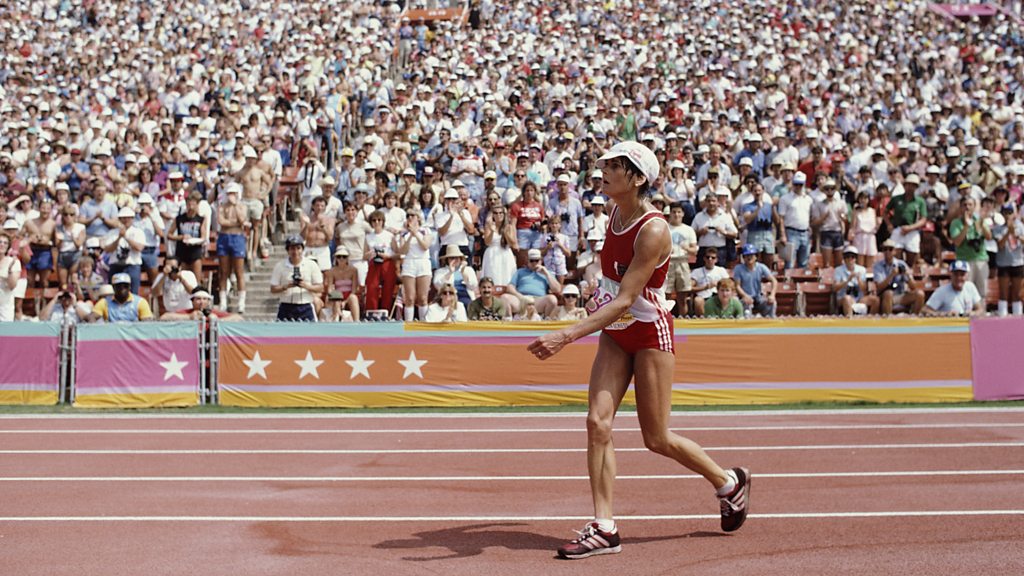 In 1984, the women's marathon was held in the Olympic Games for the first time. But to the horror of the crowd in Los Angeles, one of the runners, Gabriela Andersen-Scheiss of Switzerland, entered the stadium in a state of virtual collapse from heat exhaustion. The 40-year-old ski instructor was not used to the hot Californian climate. She had to hobble her way around the final lap of the race. The crowd of ninety thousand people in the LA Memorial Colosseum cheered her on as she made it to the finish line. Andersen-Scheiss tells Ashley Byrne about her ordeal. The programme is a Made-In-Manchester Production that was first broadcasted in 2016. (Photo: Andersen-Scheiss finishing the race in 1984. Credit: Getty Images)