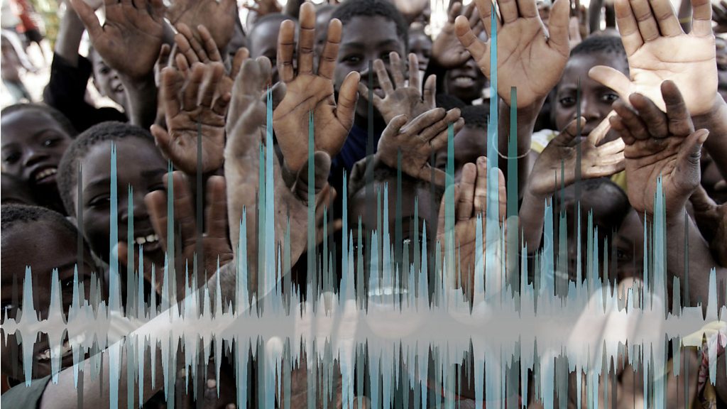 BBC reporter Neal Razzell's audiograph on global infant mortality throughout the decades. Photo: Getty Images Composite with sound frequency graphic - Credit Thinkstock