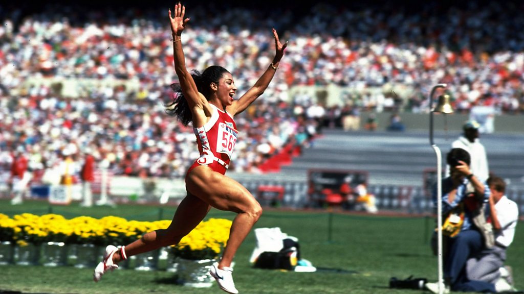 'She just made it look so easy. It was style, beauty and grace in one.' Florence Griffith-Joyner (named Flo-Jo by her fans)'s husband Al Joyner remembers her winning gold and breaking the world record in the 200 metres women's final at the Olympics in Seoul 1988. Picture: Florence Griffith-Joyner, Credit: Getty Images Sport.