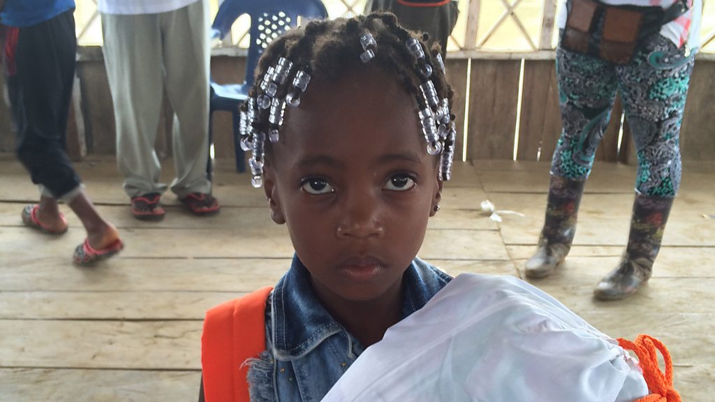 In the Colombian capital of Bogota, Lucy Ash meets two people who fear they will never be able to return to their homes. They both come from Choco, which is one of the poorest provinces and most violent parts of the country. Maria, an Afro-Colombian mother of four, fled her town after she was abducted and brutally attacked by paramilitaries. Plinio was trying to help members of his indigenous community go back to their farms when he received death threats from a splinter group of left wing guerrilla (the ELN) and his friend was assassinated. Their stories illustrate a nationwide trauma – the government may be on the brink of a historic peace deal with the FARC rebels, but Colombia has even more internally displaced people than Syria. More than 200,000 have been killed and seven million driven off their land during half a century of war. Lucy travels down the River Baudo to meet people uprooted from their jungle villages in violent clashes earlier this year and finds that Latin America’s longest insurgency is far from over. (A primary school pupil from the village of Las Delicias on the River Baudo holds a hygiene kit supplied by the Norwegian Refugee Council and has a new satchel of school equipment on her back. Very little humanitarian aid reaches this part of Western Colombia where fighting recently broke out between the National Liberation Army or ELN guerrillas and a paramilitary group.) Reported and produced by Lucy Ash.
