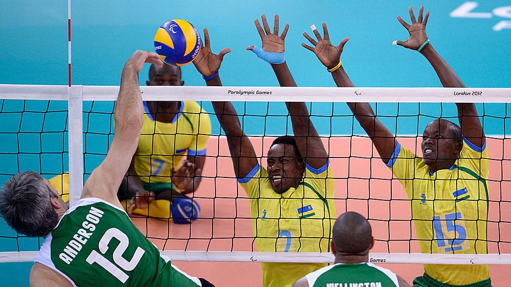 In 2012, the Rwandan sitting volleyball team became the first Paralympians from their country. The sport began in Rwanda after thousands of people were mutilated during the genocide of 1994, and there were emotional scenes in London when the Rwandan side eventually won a match. Bob Nicholson talks to Rwanda’s captain, Emile Vuningabo, and the side’s Dutch coach, Peter Karreman. The programme is a Whistledown Production. PHOTO: The Rwandan team blocking a shot at London 2012 (Getty Images)