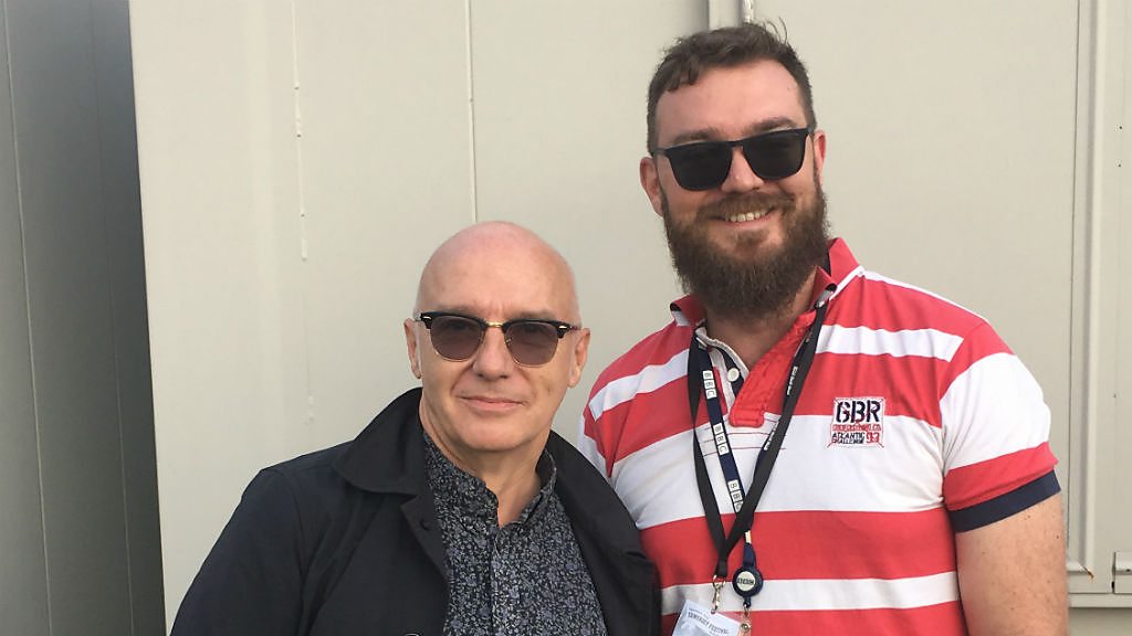 Ultravox frontman Midge Ure chats to BBC Radio Oxford's Phil Mercer at Towersey.