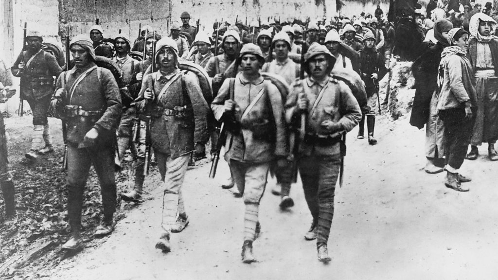 Smyrna on Turkey's Aegean coast was one of the richest cities in the Ottoman Empire. It had a diverse mix of peoples and religions - Greeks, Turks, Armenians, Levantines, and Jews. The city was famous for its tolerant and cosmopolitan way of life. But that began to change in the aftermath of World War One. The Greek army occupied Smyrna and its surroundings and was responsible for atrocities against Turks. Then in September 1922, Turkish forces routed the Greek army and re-entered the city. They began a campaign of rape, murder and looting mainly targeted at Armenians and Greeks. Within days the city was ablaze. Rob Walker has been speaking to Jacques Nalbantian, who was five years old when the fire broke out, and to the historian Giles Milton. (Photo: Turkish soldiers on the march near Smyrna in September 1922. Credit: Topical Press Agency/Hulton Archive/Getty Images)
