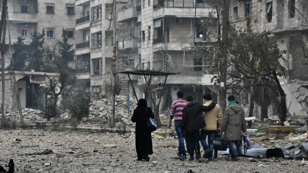 With the ceasefire in the eastern part of the Syrian city of Aleppo is now in place. However, plans to get the injured, civilians and fighters out of the city hit delays on Tuesday morning. We hear from one resident, a journalist still in eastern Aleppo, about the situatuation there. (Picture: Syrian residents in Aleppo. Credit: George Ourfalian/AFP/Getty Images)