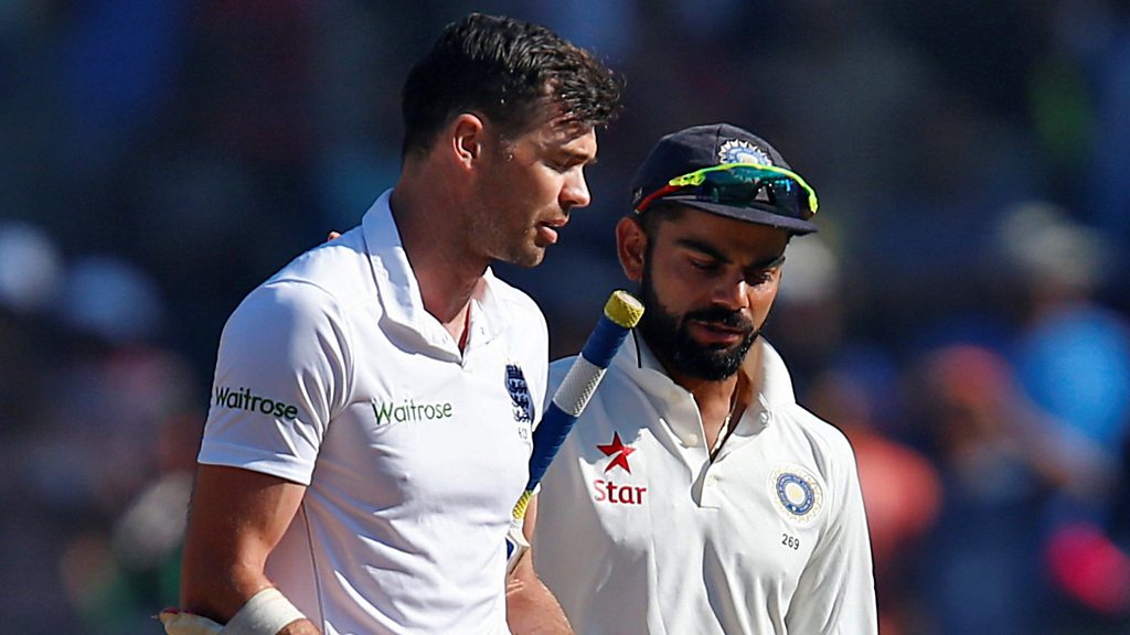 India captain Virat Kohli guided his team to a 3-0 lead against England in the Test series as he made 235 in Mumbai. It was his third double hundred of the year and took his tally in the series to 640 runs but James Anderson believes he is far from perfect and has flaws in his game. Rajkumar Sharma who spotted Kohli when he was nine years old, told Alison Mitchell that he was shocked by Anderson's comments. Picture - James Anderson and Virat Kohli (Credit - Reuters)