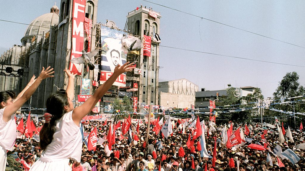 In January 1992 a peace treaty was signed by El Salvador's Marxist FMLN rebels and the US-backed government to end one of the most bitterly fought Cold War conflicts in Latin America. It took two years of UN-brokered negotiations to reach a deal, which saw the FMLN lay down its weapons and become a legal political party. In return, the government agreed to radical reforms of the military and the creation of a new civilian police force. Mike Lanchin hears from a former female guerrilla about her experience of war and peace. Photo: Two women launch doves during celebrations in San Salvador of the peace accords signed by the government and the guerrillas (FRANCISCO CAMPOS/AFP/Getty Images)