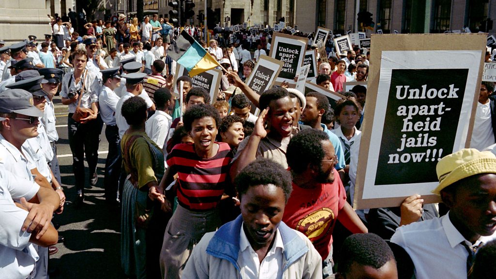 On February 2nd 1990, the South African president FW de Klerk surprised the world by announcing in parliament that he was dismantling apartheid - the system of institutionalised racial segregation which had denied black South Africans their basic rights for forty years, including the right to vote. Louise Hidalgo has been talking to Adriaan Vlok, FW de Klerk's law and order minister, about that day and about coming to terms with the crimes committed in apartheid's name. Picture: Anti-apartheid protestors demonstrate in Cape Town on the same day that President de Klerk announced the lifting of the ban on the ANC and the release of all political prisoners, including Nelson Mandela (Credit: RASHID LOMBARD/AFP/Getty Images)