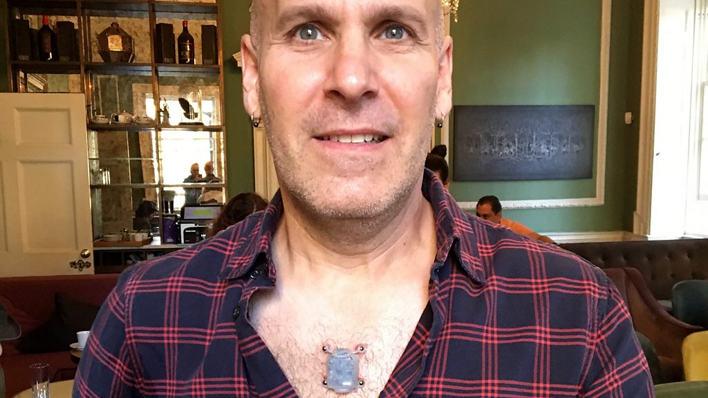 Scott Cohen demonstrates how his North Sense cybernetic device works.