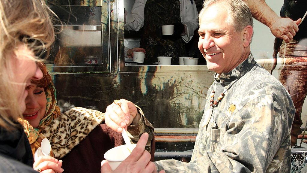None of his cooking student graduates until they can stare in to a cast-iron pot and identify the seven nations that make up a Cajun gumbo, says chef John Folse. He tells the BBC's Dan Saladino why he thinks it's so important to see that American people are like a pot of gumbo: all mixed up and delicious. (Image: Chef John Folse. Donald Bowers/ Getty Images)