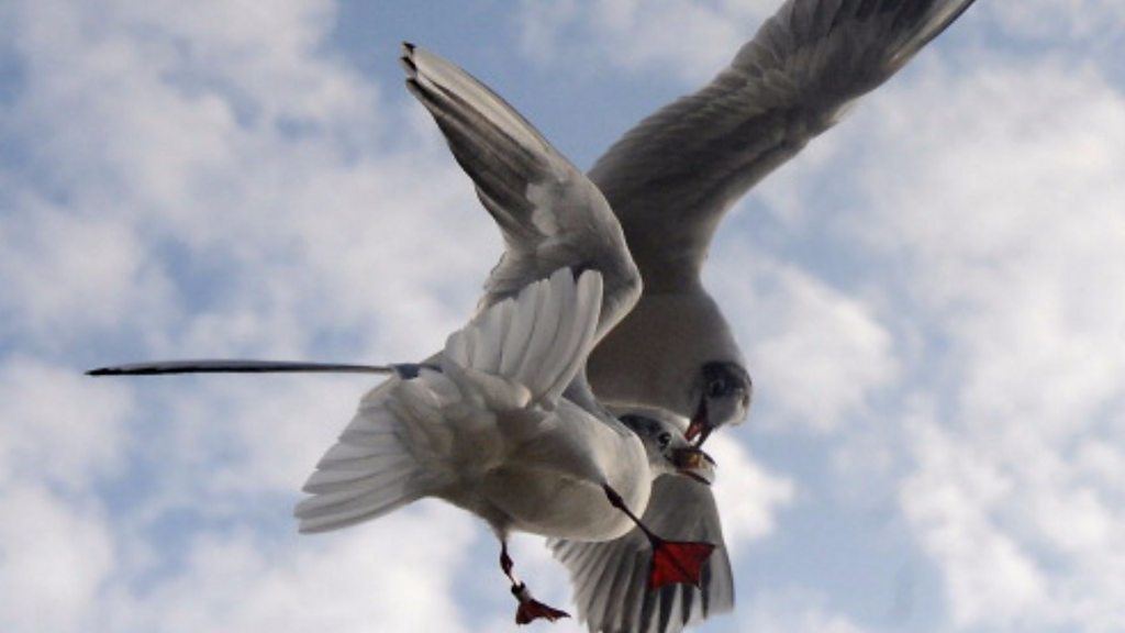 Syed Viqar's soundscape of birds fighting for food. He says he captured the sound by placing a binaural 3D sound microphone in a tree house. (Photo of birds fighting by Michal Cizek/AFP/Getty Images)