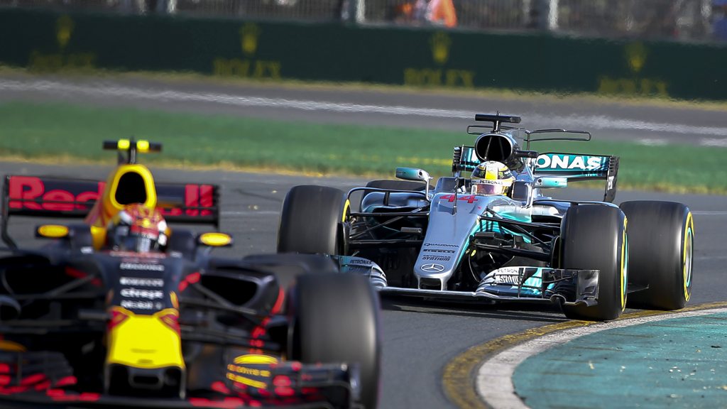 Lewis Hamilton's race is compromised after coming out behind Max Verstappen following his pit stop at the Australian Grand Prix. It would eventually see the Mercedes driver him lose the race to Ferrari's Sebastian Vettel. This clip is originally from 5 live Formula 1 on Sunday, 26 March 2017.