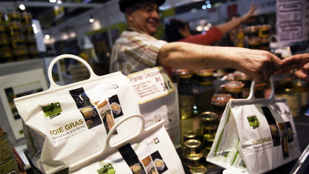 Foie gras is a key ingredient in France's culinary history, and its politicians have been quick to defend it from foreign attack. Michaela de Soucey, from North Carolina State University, has written a book on the subject. (Picture: A man sells foie gras at a Paris market. Credit: Loic Venance, Getty Images)