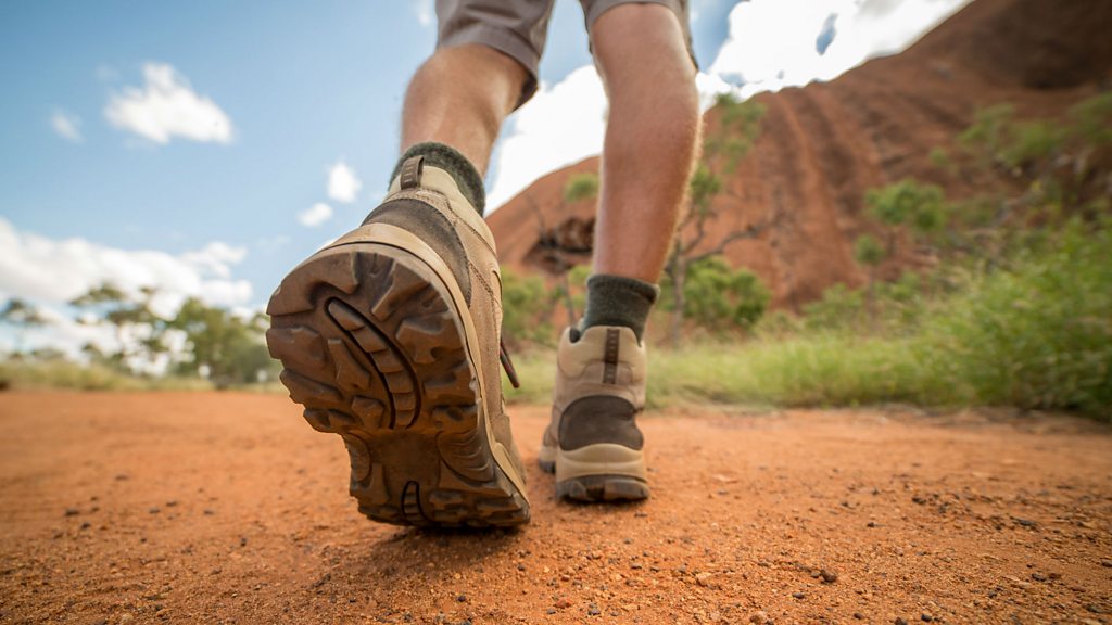 Professor Lera Boroditsky explains how certain languages help their speakers find their way around. (Image: Hiking boots walking in the Australian Outback. Credit: Getty Images)