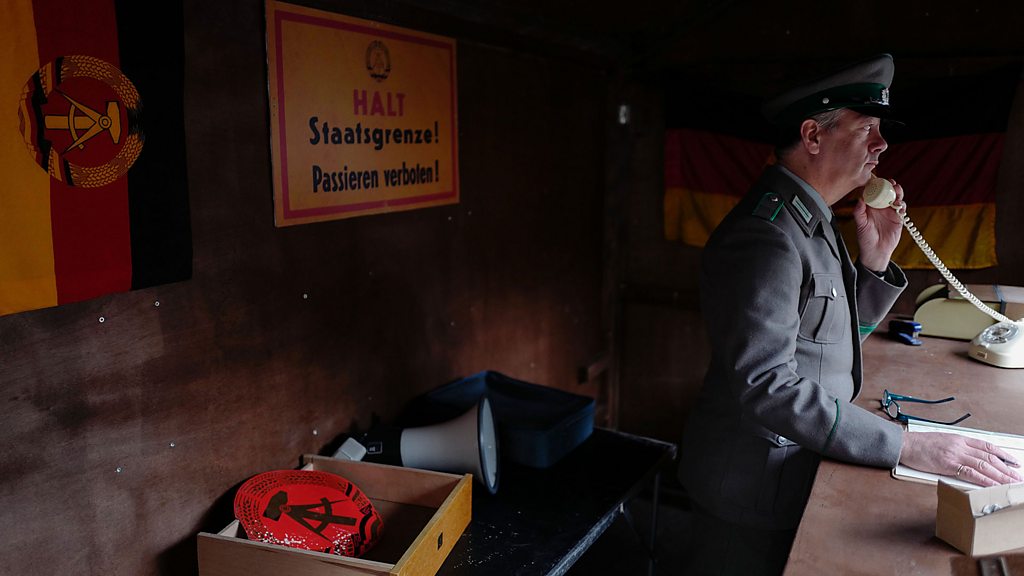 GDR leaders feared the power and influence of western music and tried to develop a Communist youth culture. (Photo: An East German border guard in a watch tower on the Berlin Wall. Credit: Getty Images)
