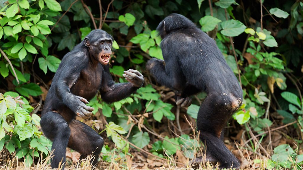 A gang of chimps have killed an adult chimp from a neighboring community in the Budongo forest in Uganda. Adrianne Lowe and Geresomu Muhumuza bore witness. The audio contains graphic descriptions of violence.