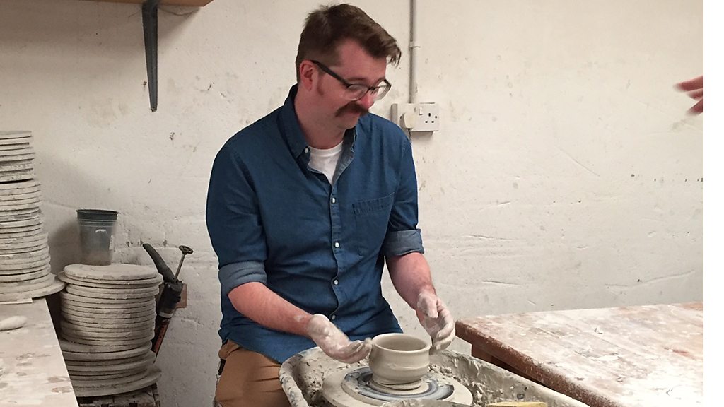 Intrepid presenter Steven Rainey gets a hands-on lesson from Armagh potter Sean O'Dowd