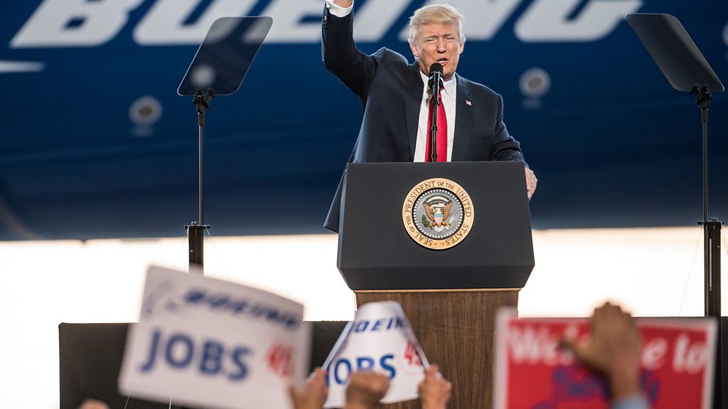 Donald Trump is very proud of the one million jobs the US economy has created since he became President. But how impressive is that number? More or Less talk job stats with Heather Long, economics correspondent at the Washington Post. (Photo: U.S. President Donald Trump addresses a crowd during the debut event for the Dreamliner 787-10 at Boeing's South Carolina facilities in North Charleston, South Carolina. Credit: Getty Images)