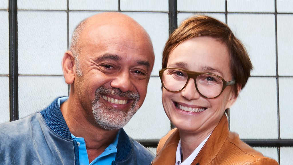 Christian Louboutin explains to Kristin Scott Thomas how location, music and light are essential for designing his collections. Photo: Christian Louboutin and Kristin Scott Thomas Credit: BBC