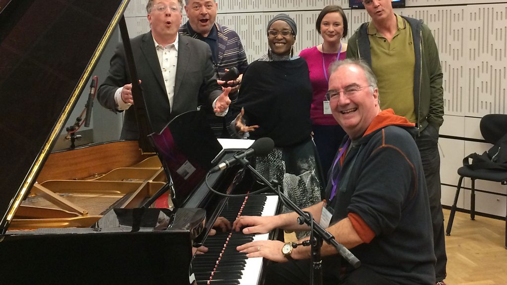 Oh My Darling Clementine but not as you know it! Matthew Sweet and his Saloneers in full cry. From left to right - Matthew, David Aaronovitch, Malika Booker, Katie Cooper, Jake Arnott and Neil Brand, piano.