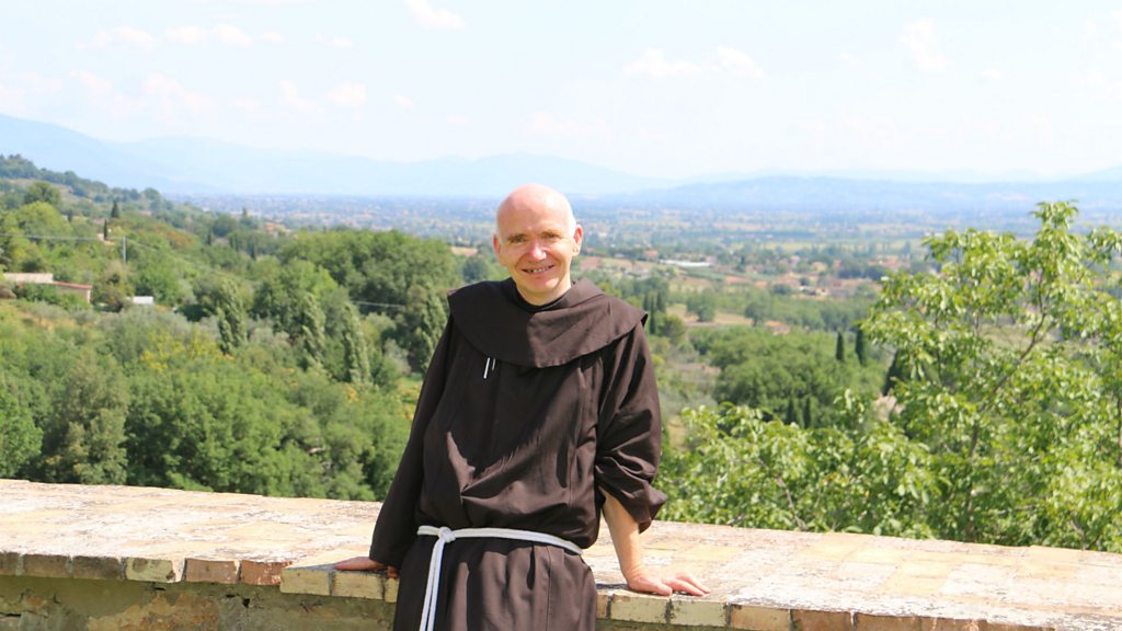 Friar Eunon explains the meaning behind the "garb" to Sharon Grenham Thompson.