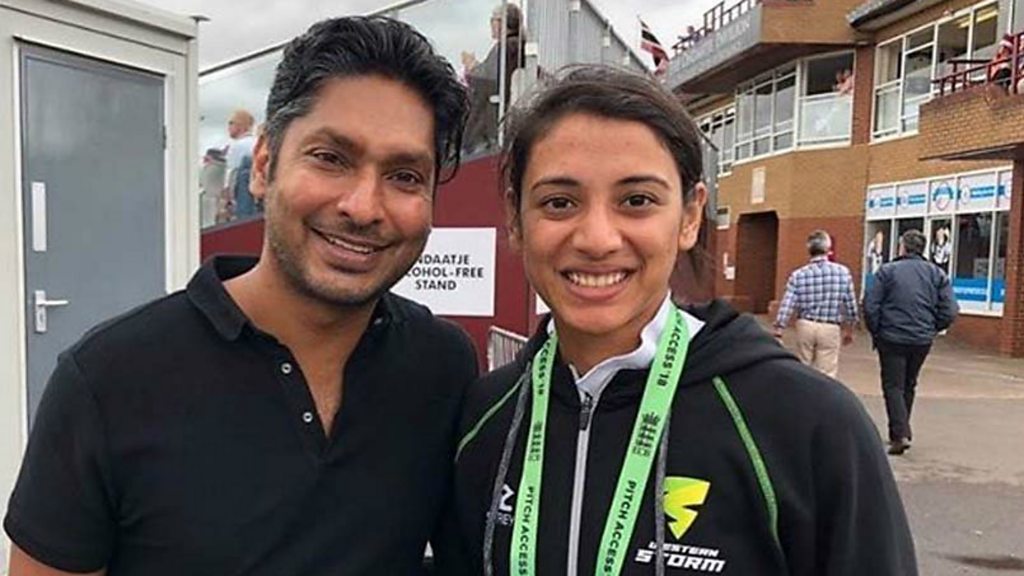 India and Western Storm star Smriti Mandhana has been taking the Kia Super League by storm this summer. She's broken the competition run-scoring record, boasts the highest batting average and she's scored the biggest individual innings. And Mandhana has been telling Alison Mitchell what her idol, Sri Lanka legend Kumar Sangakkara, said about her batting when they met this summer. Photo: Kumar Sangakkara & Smriti Mandhana (Instagram: smriti_mandhana)