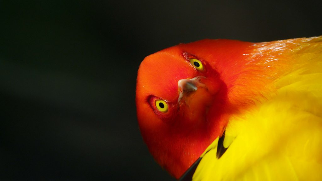 Trill, flap and beat with the Macgregor's bowerbird in Tari, Papua New Guinea. This Amblyornis Macgregoriae calls elaborately as it prepares its bower on the forest floor. Listen out for its shrill calls, wing flaps, arpeggios, bass notes and complex rhythmic trilling. Mike Potts captured the recording for the BBC in December 1995. Image is of a male orange flame bowerbird (Sericulus aureus) beginning his own mesmerizing display, spotlit by a shaft of sunlight on the dark Papua New Guinean forest floor.
